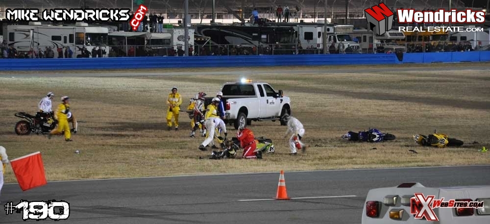 Daytona 200 Pile Up - These guys have big balls and were ok!